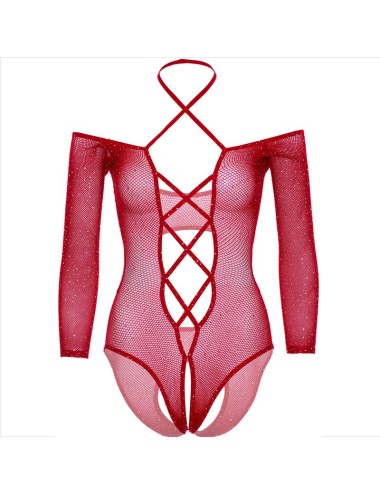 Jedes Detail dieses Bodys wurde sorgfältig ausgearbeitet, um Ihre Kurven verführerisch hervorzuheben, während die Strasssteine für einen spektakulären Glanz sorgen, der das Licht einfängt und Ihrem Auftritt eine luxuriöse Note verleiht. Das Fehlen eines Schritts sorgt für ein faszinierendes und sinnliches Element und macht diesen Body zur perfekten Wahl für besondere Momente.